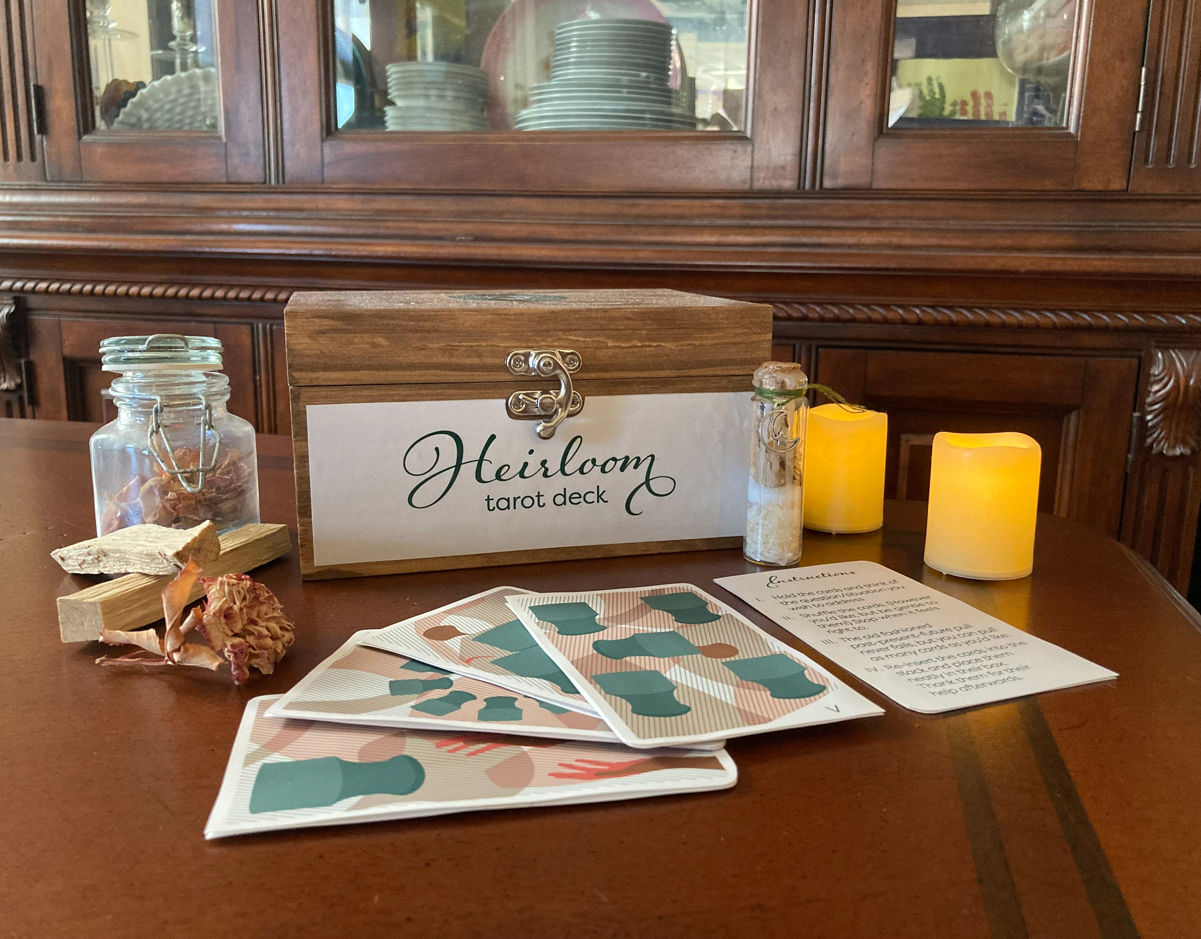 Tarot is something that has been passed down to me from my mother; in particular, the suit of cups is where we both identify. My visual development process was guided by these familial connections. This piece draws visual inspiration from my family home, the constellation Cassiopeia, and both mine and my mother's birthstones. Incorporating concepts of lineage and family connection were at heart while producing this design.